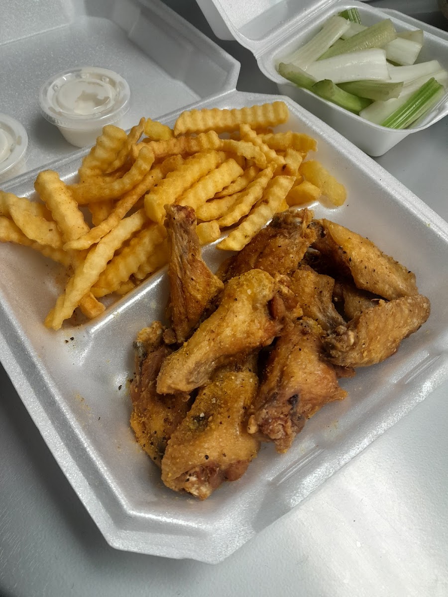 The lemon pepper wings and fries taste great .Perfectly seasoned and cooked just right! The customer service was great, and my order came out super fast. Definitely one of the best wing spots around!